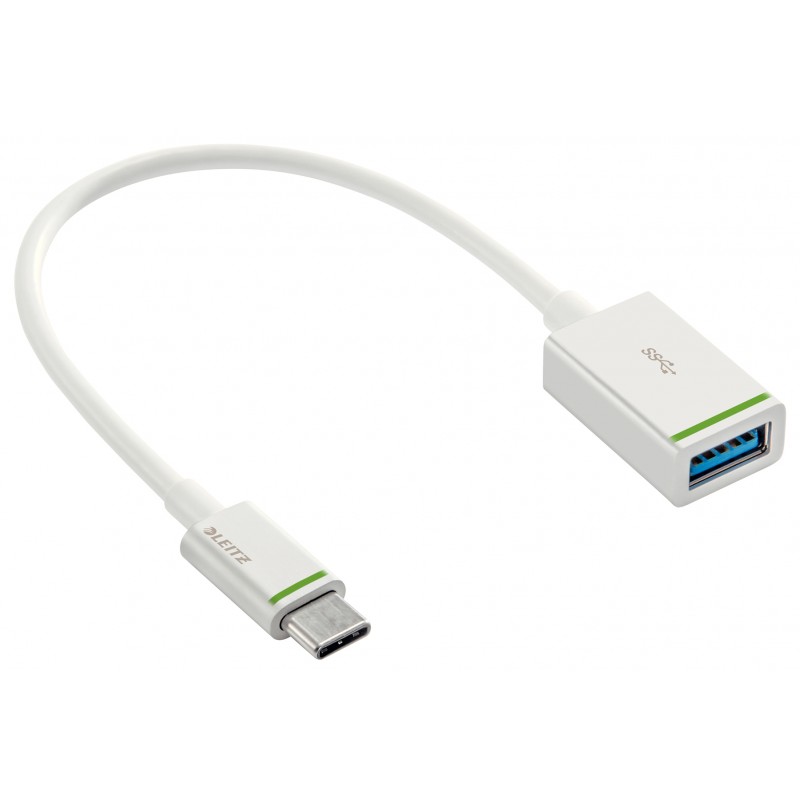 Cablu adaptor LEITZ Complete tip USB-C la tip USB-A(F), cu ieaire până la 3.1A, 15 cm - alb