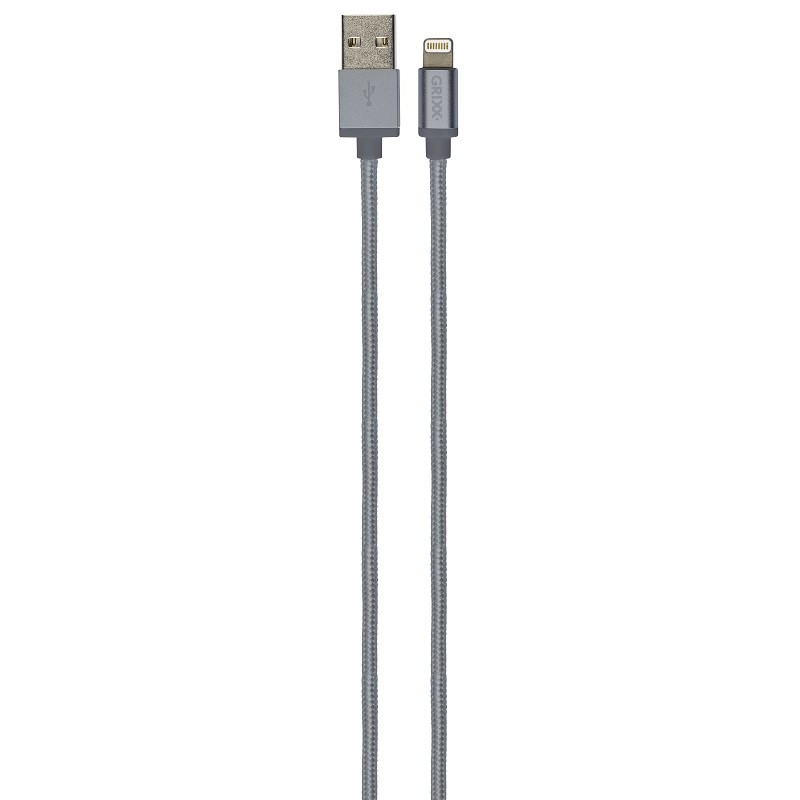 Cablu date GRIXX Optimum - 8-pin to USB Apple MFI License, impletit, lungime 1m - gri