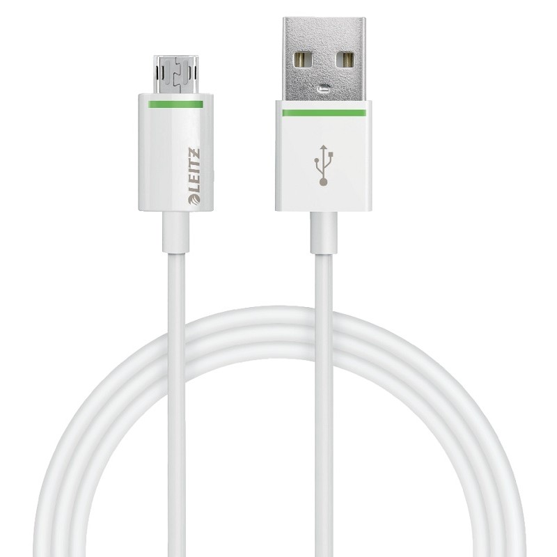 Cablu de date Leitz Complete, Micro-USB la USB-A, reversibil, 1 m, alb