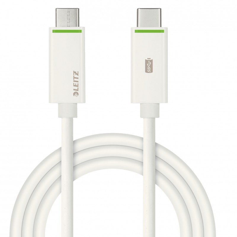 Cablu de date LEITZ Complete tip USB-C la tip USB-C, cu ieaire până la 3.1A, 1 m - alb