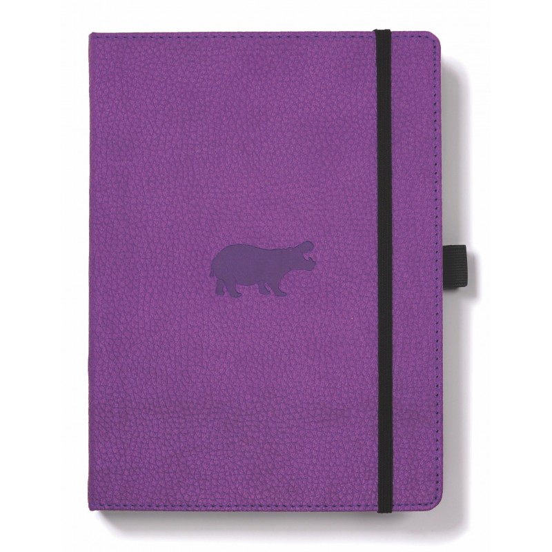 Caiet cu elastic, A5+, 96 file-100g/mp-cream, coperti rigide violet, Dingbats Hippo - cu puncte