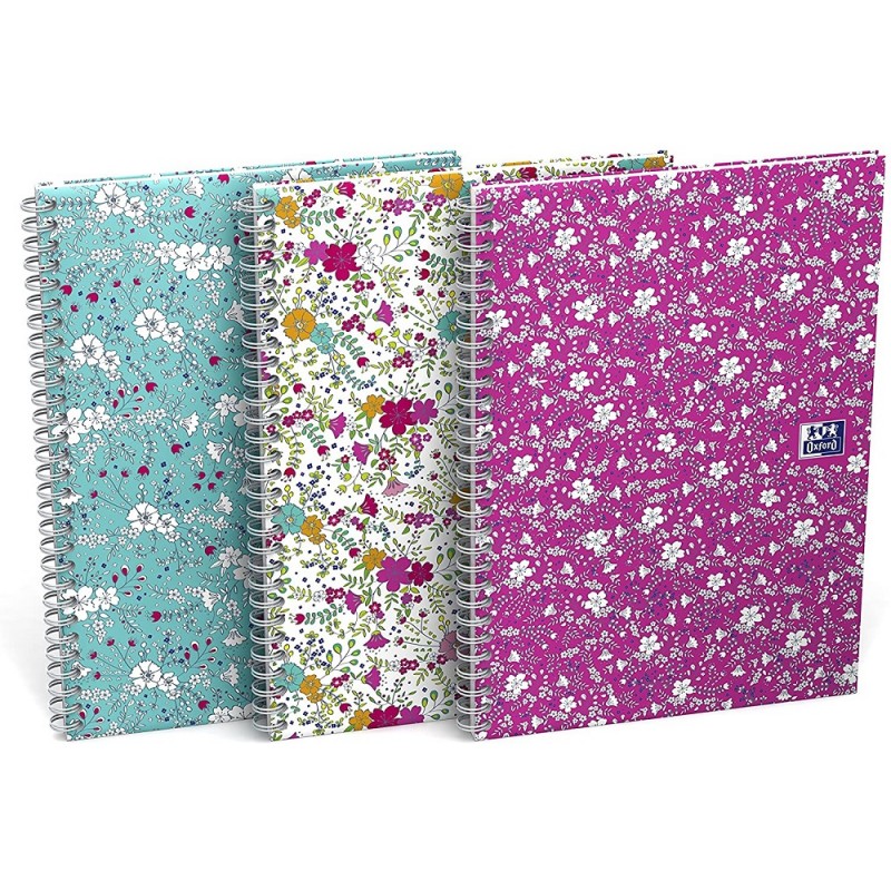 Caiet cu spirala A5, OXFORD Floral, 120 file, coperta carton rigid- mate