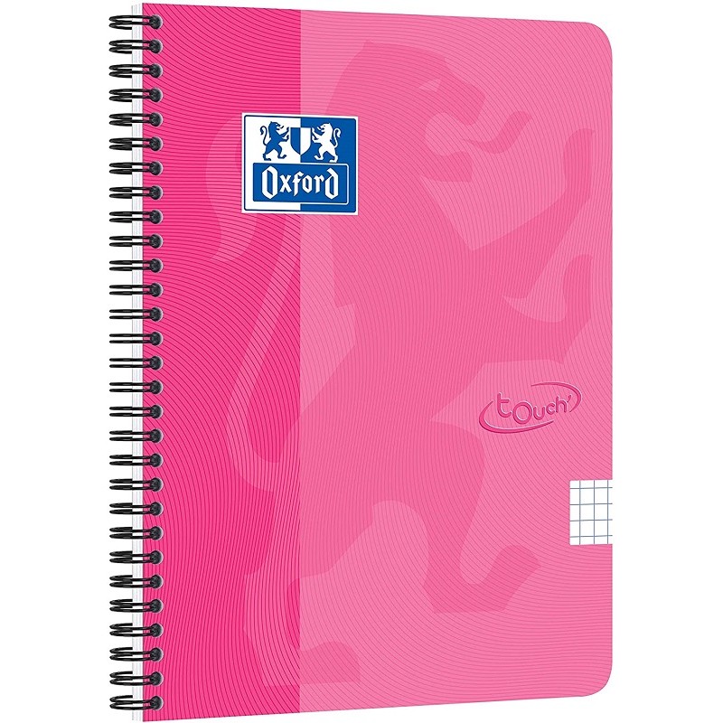 Caiet cu spirala A5, OXFORD School Touch , 70 file-90g/mp, 4 perf, coperta carton roz - mate
