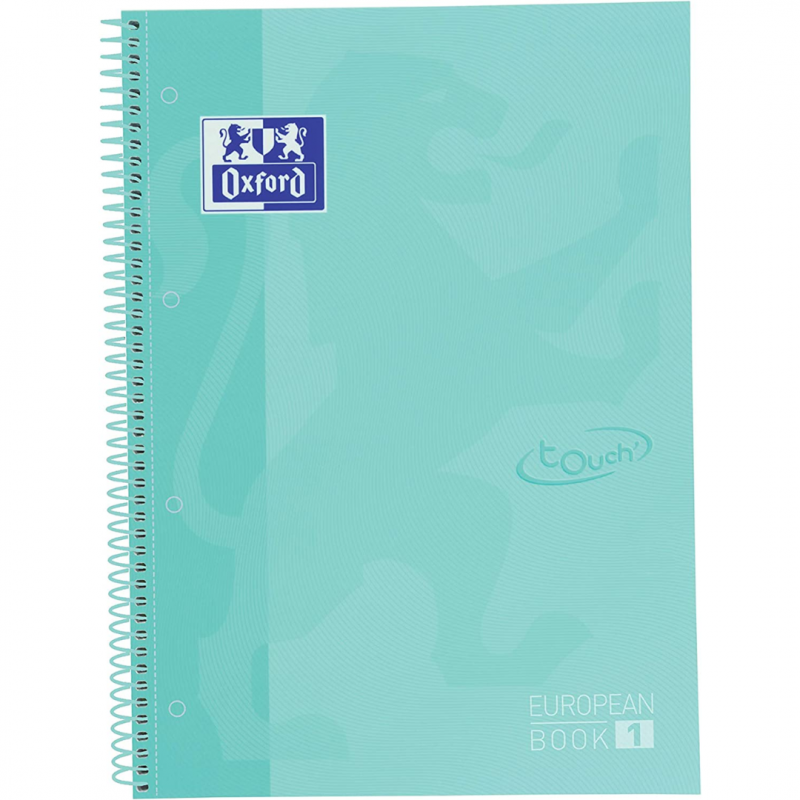 Caiet cu spirala, OXFORD Europeanbook 1, A4+, 80 file-90g/mp, hardcover turcoaz pastel, Scribzee-mat