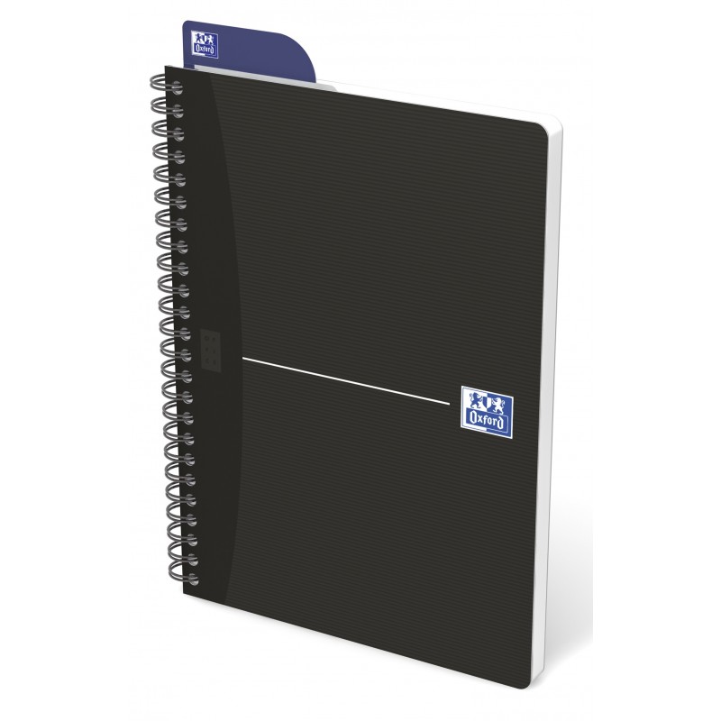 Caiet cu spirala, OXFORD Office Essentials, A5, 90 file-90g/mp, Scribzee, 4 perf, coperta carton-dic