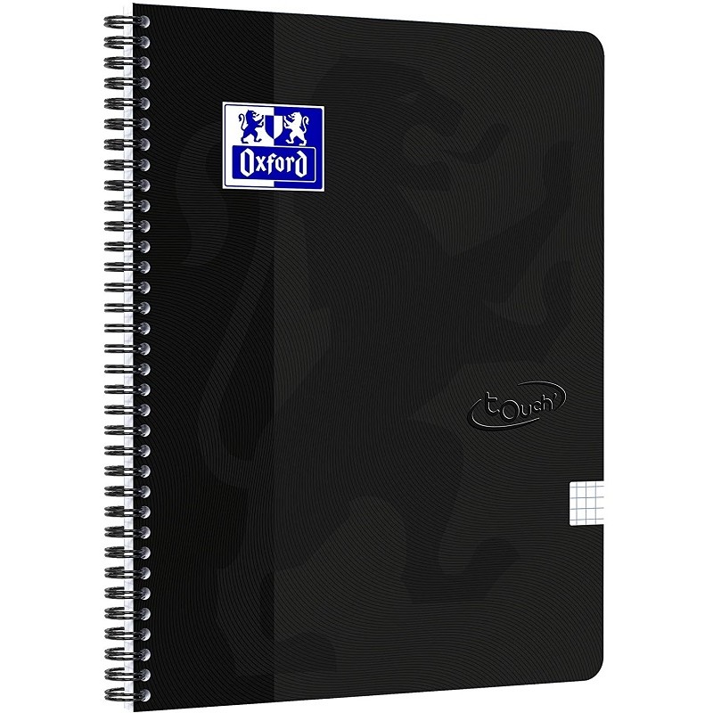 • Caiet cu spirala, OXFORD School Touch, A4, 70 file-90g/mp, 4 perf, coperta carton negru - mate