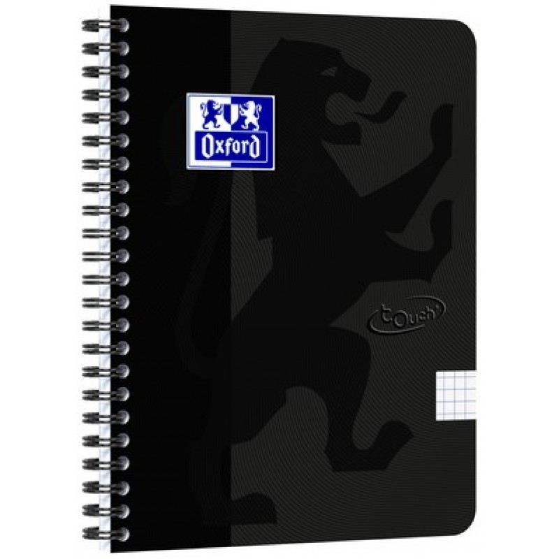 • Caiet cu spirala, OXFORD School Touch, A5, 70 file-90g/mp, 4 perf, coperta carton negru - mate