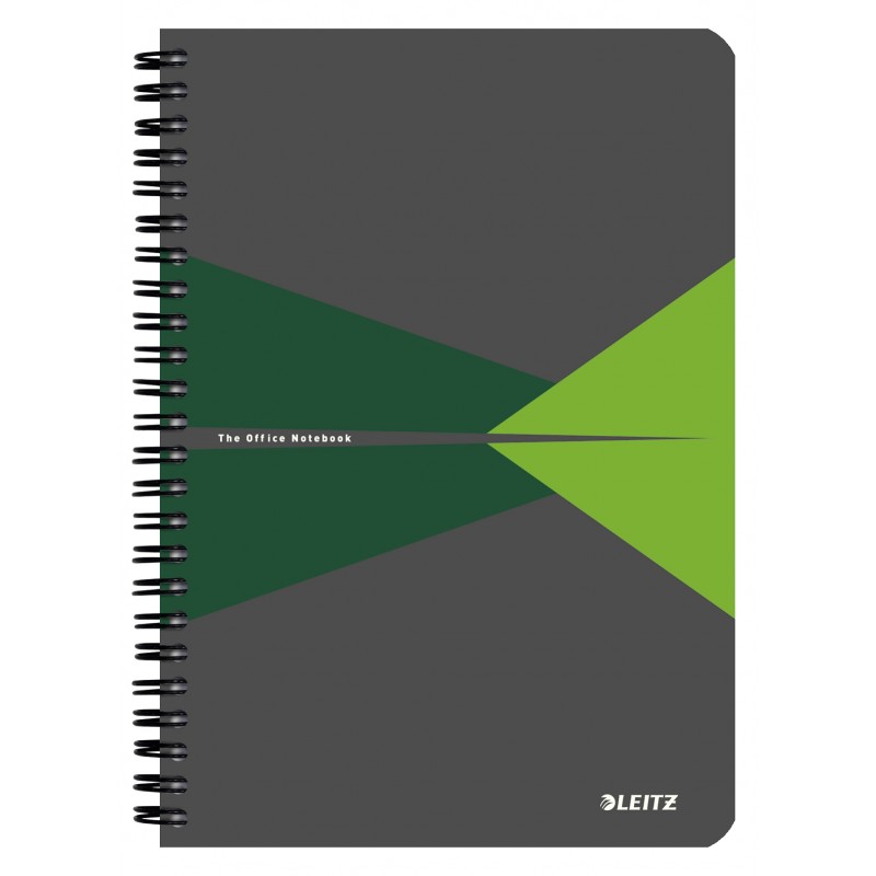 Caiet de birou Leitz Office, carton laminat, FSC, reciclabil, A5, 90 coli, cu spira, dictando, verde