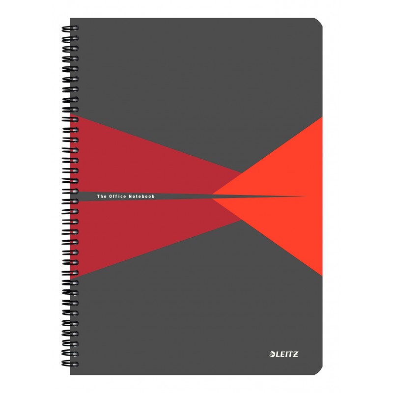 Caiet de birou Leitz Office, PP, FSC, reciclabil, A4, 90 coli, cu spira, dictando, rosu