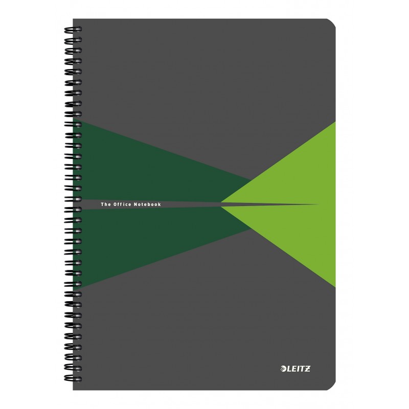 Caiet de birou Leitz Office, PP, FSC, reciclabil, A4, 90 coli, cu spira, matematica, verde
