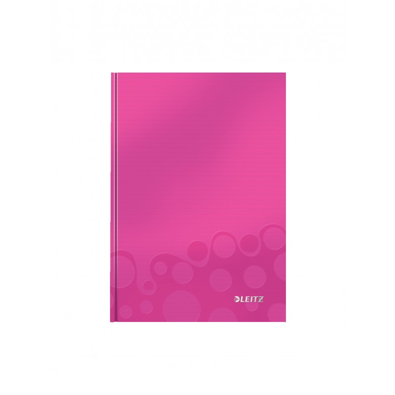 Caiet de birou Leitz WOW, carton laminat, coperta dura, FSC, reciclabil, A5, 80 coli, dictando, roz