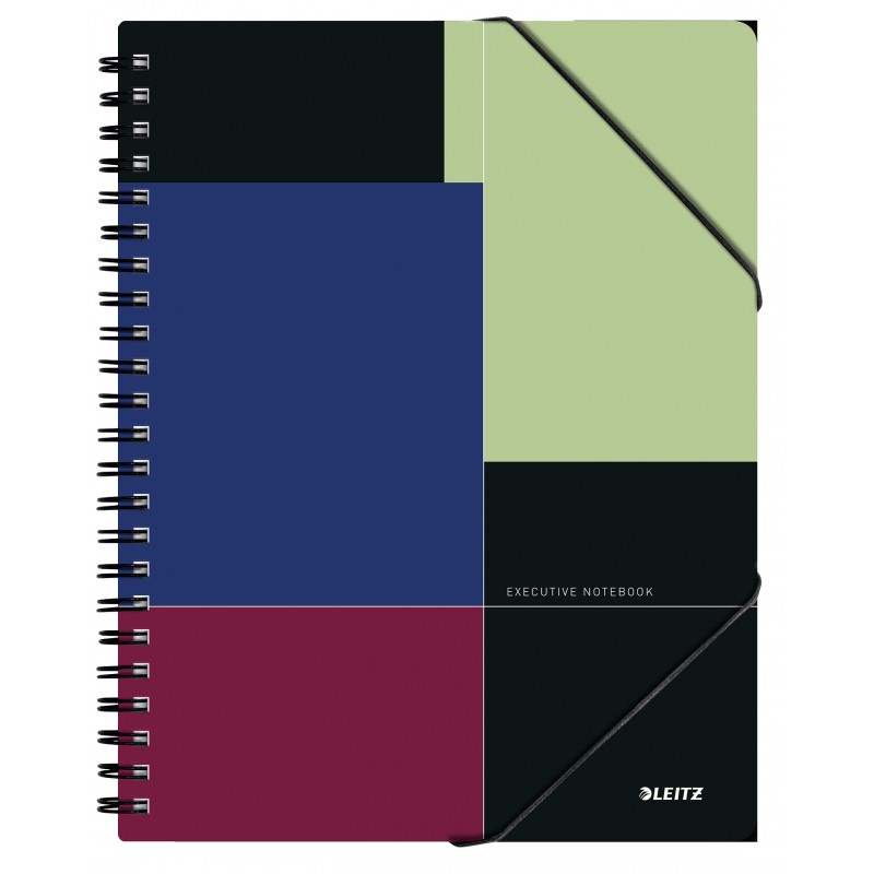 Caiet Leitz Executive Be Mobile, PP, FSC, reciclabil, A4,80 coli, cu spira, matematica, negru-violet