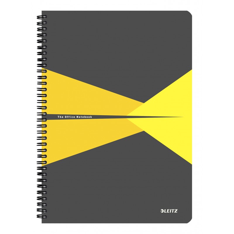 Caiet Leitz Office, carton laminat, FSC, reciclabil, A4, 90 coli, cu spira, dictando, galben