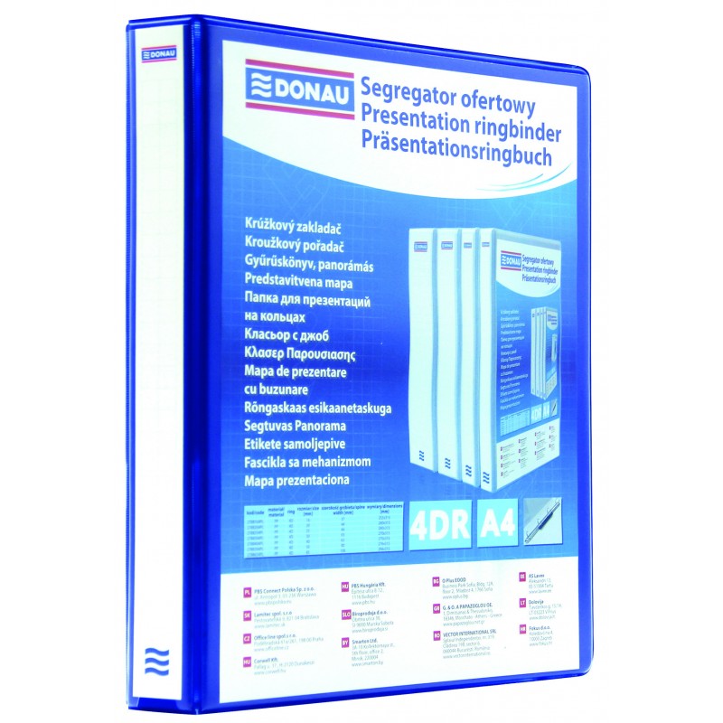 Caiet mecanic cu buzunar, plastifiat PP, 4 inele in "D", 30 mm, cotor 50mm, DONAU - albastru
