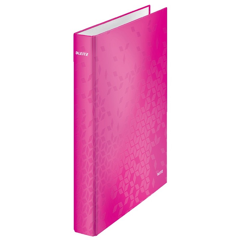 Caiet mecanic Leitz WOW, carton laminat, partial reciclat, FSC, A4, mecanism 4DR, inel 25 mm, roz