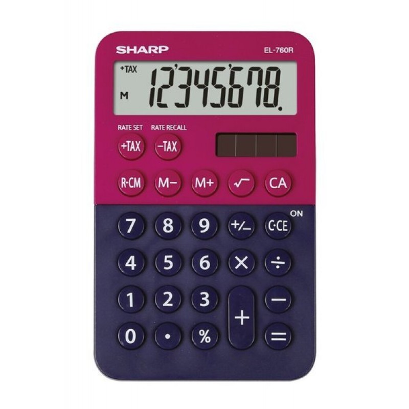 • Calculator de birou, 8 digits, 120 x 76 x 23 mm, dual power, SHARP EL-760RBRB - rosu/bleumarin