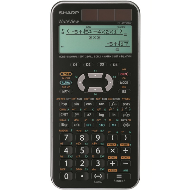 Calculator stiintific, 16 digits, 640 functii, 166x80x15 mm, dual power, SHARP EL-W506XSL-negru/argi