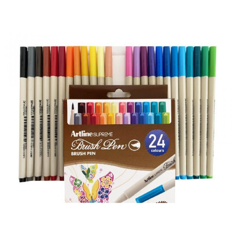 Carioca corp triunghiular, ARTLINE Supreme, varf flexibil (tip pensula), 24 culori/cutie