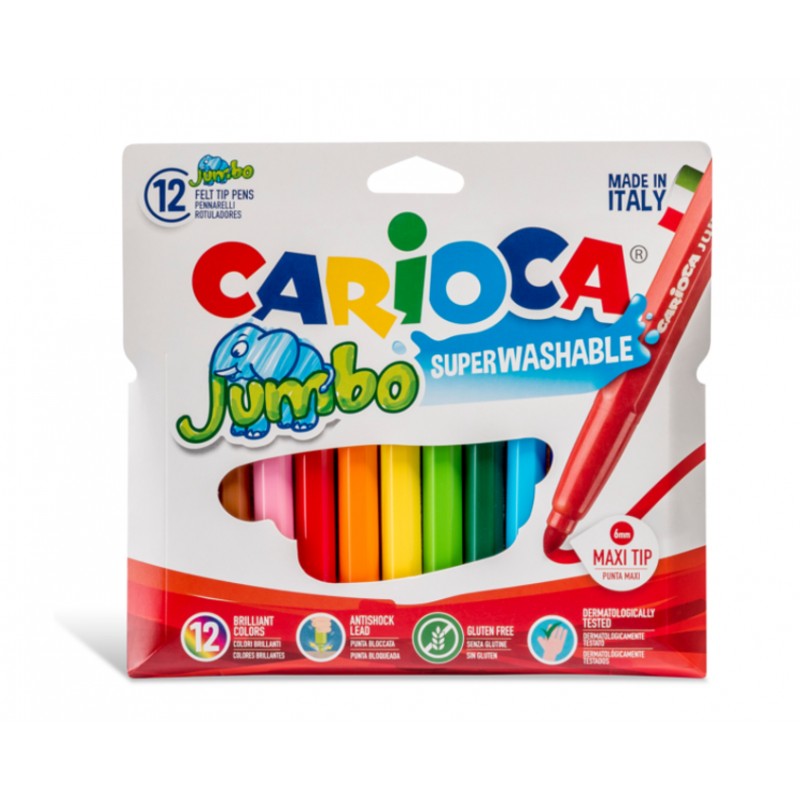 Carioca super lavabila, varf gros - 6mm, 12 culori/cutie, CARIOCA Jumbo