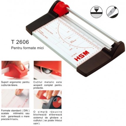 #Ghilotina cu cutit circular, manuala, pentru format pana la DIN A4. #Pentru uz profesional si parti..