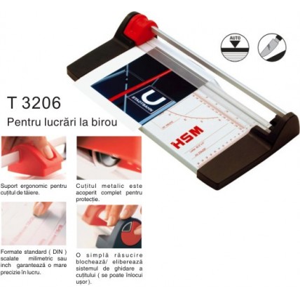 # Bara ghidaj din aluminiu. # Lungimea maxima de taiere : 320 mm. # Dimensiune maxima hartie : DIN A..