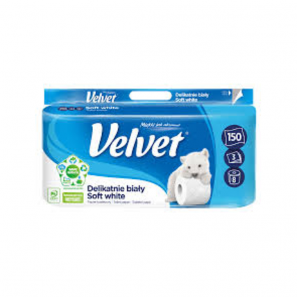# Hartie igienica alba, 3 straturi, Velvet Delicate. # Suluri de lungime standard, realizate din tre..