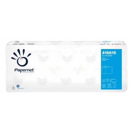 #Hartie igienica reciclata decolorata. #Portionata. #2 straturi, 16.5 gr/mp. #Lungime: 46 m (400 buc..