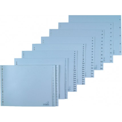 Index din plastic gri cu perforatii pe marginea stanga; separatii numerice ; 120 microni PP ; format..
