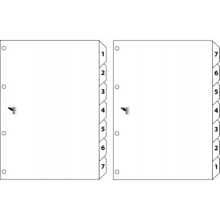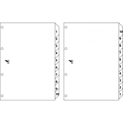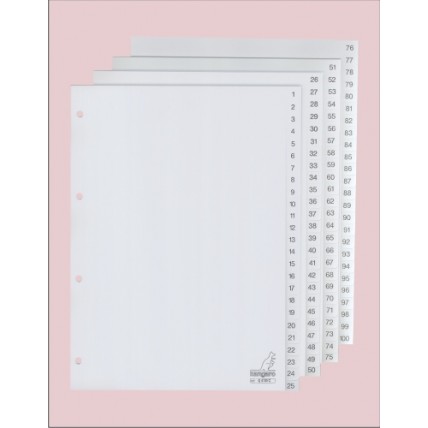 Index din plastic gri cu perforatii pe marginea stanga; separatii numerice ; 120 microni PP ; format..
