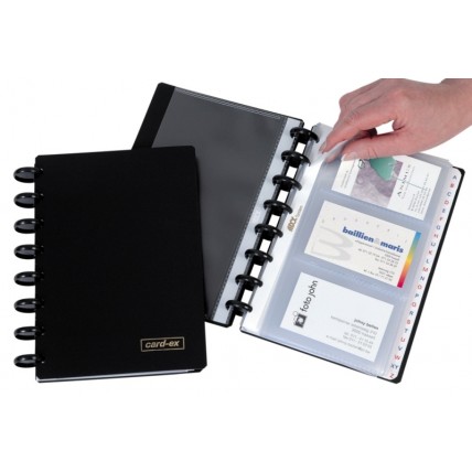 #Mapa cu inele sistem Adoc, cu coperti negre din plastic. #Capacitate: 120 carti de vizita. #Format:..