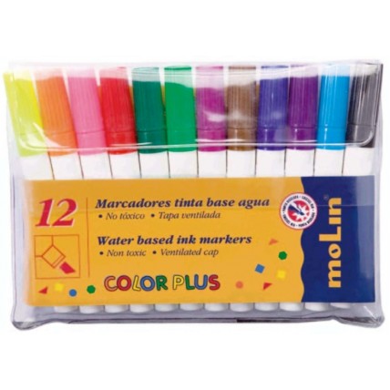 # Corp din plastic cu capac in culoarea scrierii. # Varf tesit de 12.0 mm pentru scris vizibil de la..
