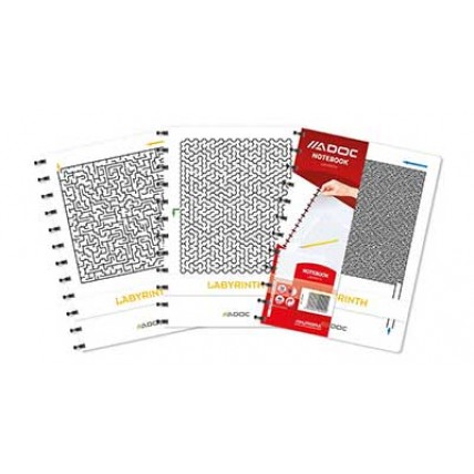 #Hartie alba de calitate, de 90 gr/mp. #Coperti din carton embosat cu model labirint. #Legat cu inel..