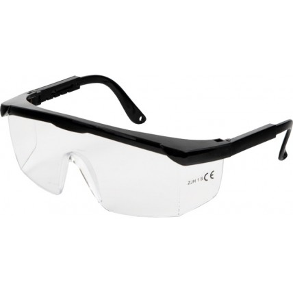 #Ochelari cu lentila policarbonat tratata antizgarieturi cu rama si brate nylon. #Aparatoare lateral..