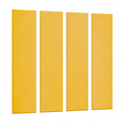 # Acoperire acustica pentru perete constand din 4 benzi galbene de felt de marimea 30 x 120 cm. Mate..
