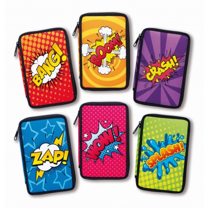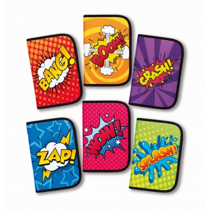 #Penar cu 2 fermoare echipat, disponibil in 6 modele Comics. #Contine : 18 carioci, 1 rigla, 1 radie..