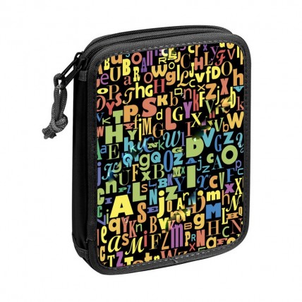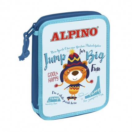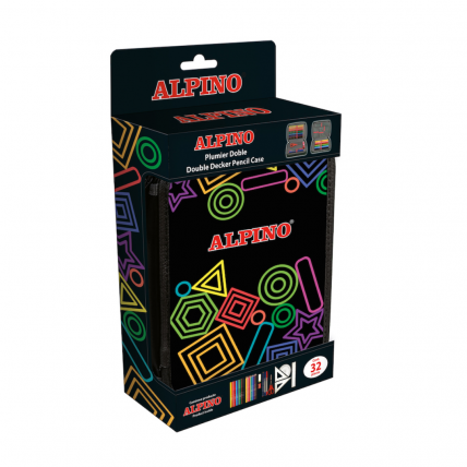 #- Toc dublu pentru creioane scolare Alpino, de culoare neagra, cu fermoar dublu si intarire interio..
