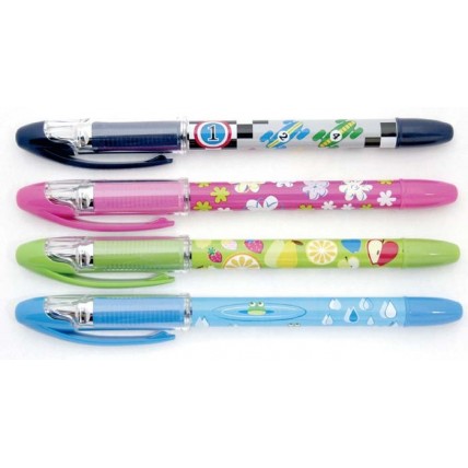 # Corp plastic transparent. # Rubber grip si extremitati color. # Reincarcabil cu rezerva (cod: P-BR..