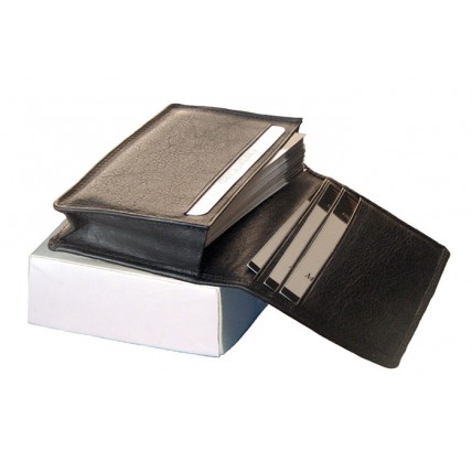 # Confectionat din piele neagra. # Prevazut cu 6 buzunare pentru carti de credit si un buzunar cu vi..
