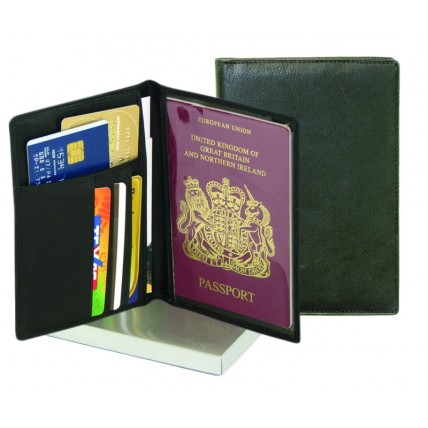 # Confectionat din piele neagra. # Buzunar transparent pentru pasaport. # 3 buzunare pentru carduri...