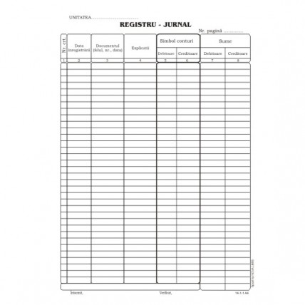 # Registru jurnal. # Format: A4. # Ambalare: 100 coli/carnet...