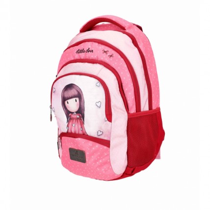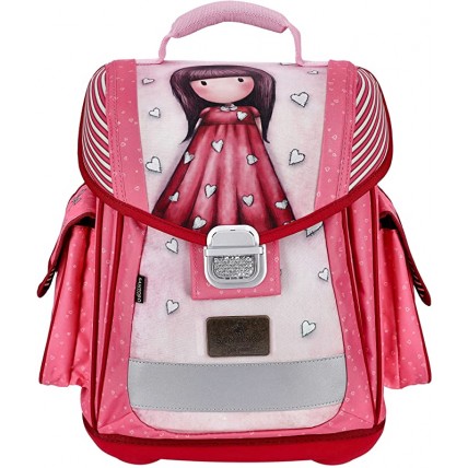 # Ghiozdanul Santoro Gorjuss are 2 compartimente principale cu fermoar; buzunar mare frontal cu ferm..