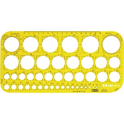 # 45 de cercuri cu diametre cuprinse intre 1-36mm, crestere de 0.5mm, cu 360grade/5 si 100/1%, 4 col..