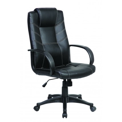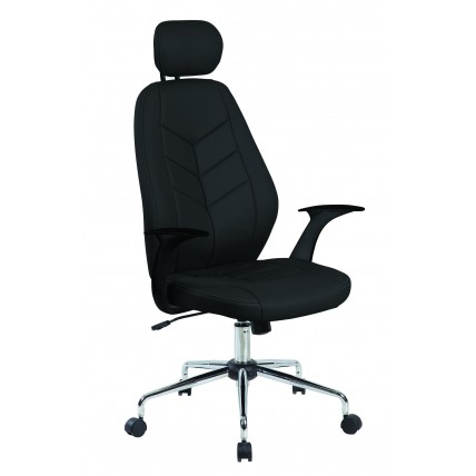 # Scaun de birou cu brate din plastic, realizat din piele ecologica. # Scaun cu rotile si tetiera, p..