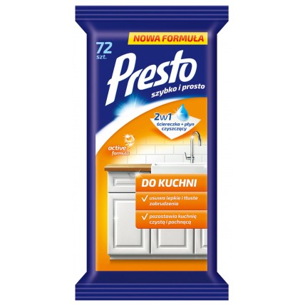 # Servetelele umede Presto pentru bucatarie sunt destinate curatarii dulapurilor si blaturilor, hote..