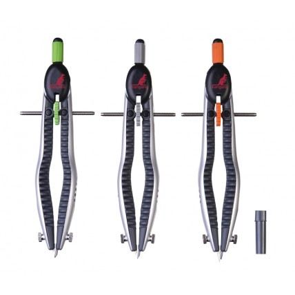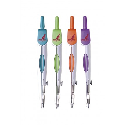 # Compas din metal argintiu cu accesorii color. # Ambalat in husa. # Design ergonomic...