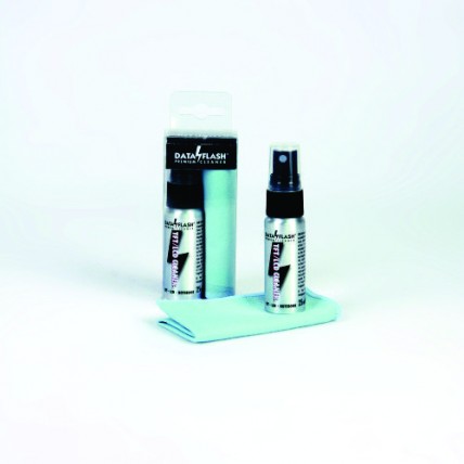 # Spray de curatare 25 ml in tub de aluminiu; laveta din microfibra (20 x 20 cm). # Ambalat in blist..