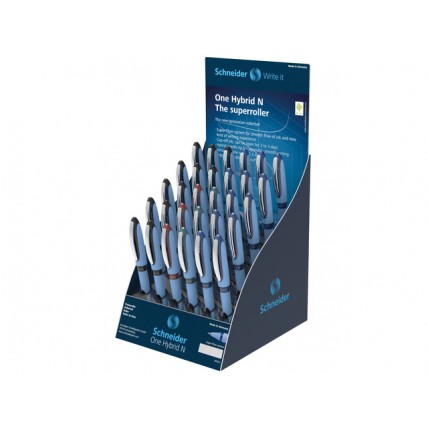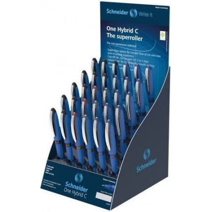 #Display pentru 30 rollere cu cerneala 0.5 mm SCHNEIDER One Hybrid N. #Ambalare: 12 x albastru, 12 x..