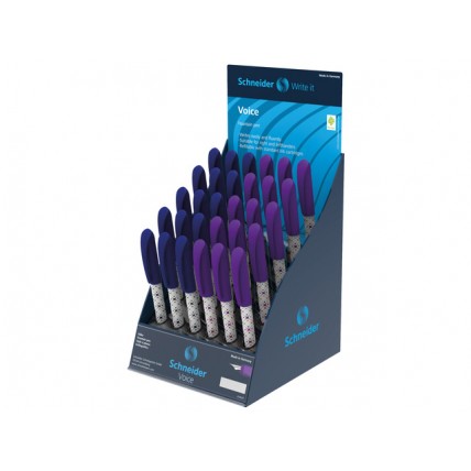 #Display pentru 30 stilouri Voice. #30 stilouri Schneider Voice: 15 x Voice violet/alb, 15 x Voice a..