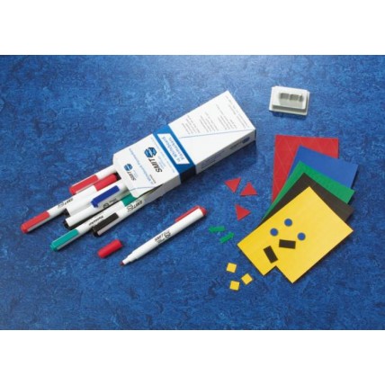 Contine: 8 markere ( 3 mm, 2 albe, 2 nergre, 1 galben, 1 albastru, 1 rosu, 1 verde); 4 magneti extra..