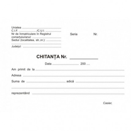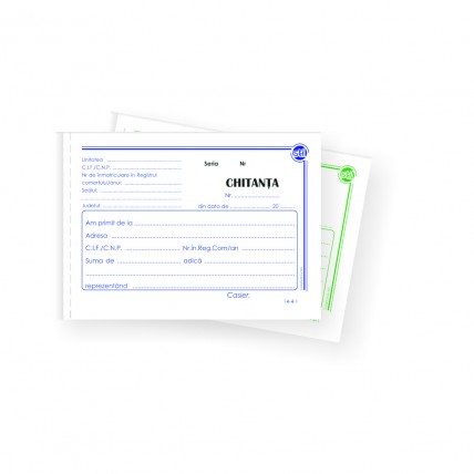 # Chitantier din hartie autocopiativa. # Tabelurile sunt construite conform legislatiei. # Format: A..